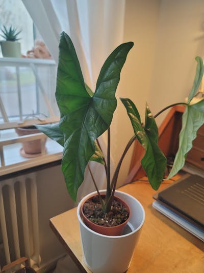 Alocasia sinuata har jag sökt länge och äntligen hittade jag den hos Ormbunker. Som tidigare anlände även denna planta i utmärkt skick👍