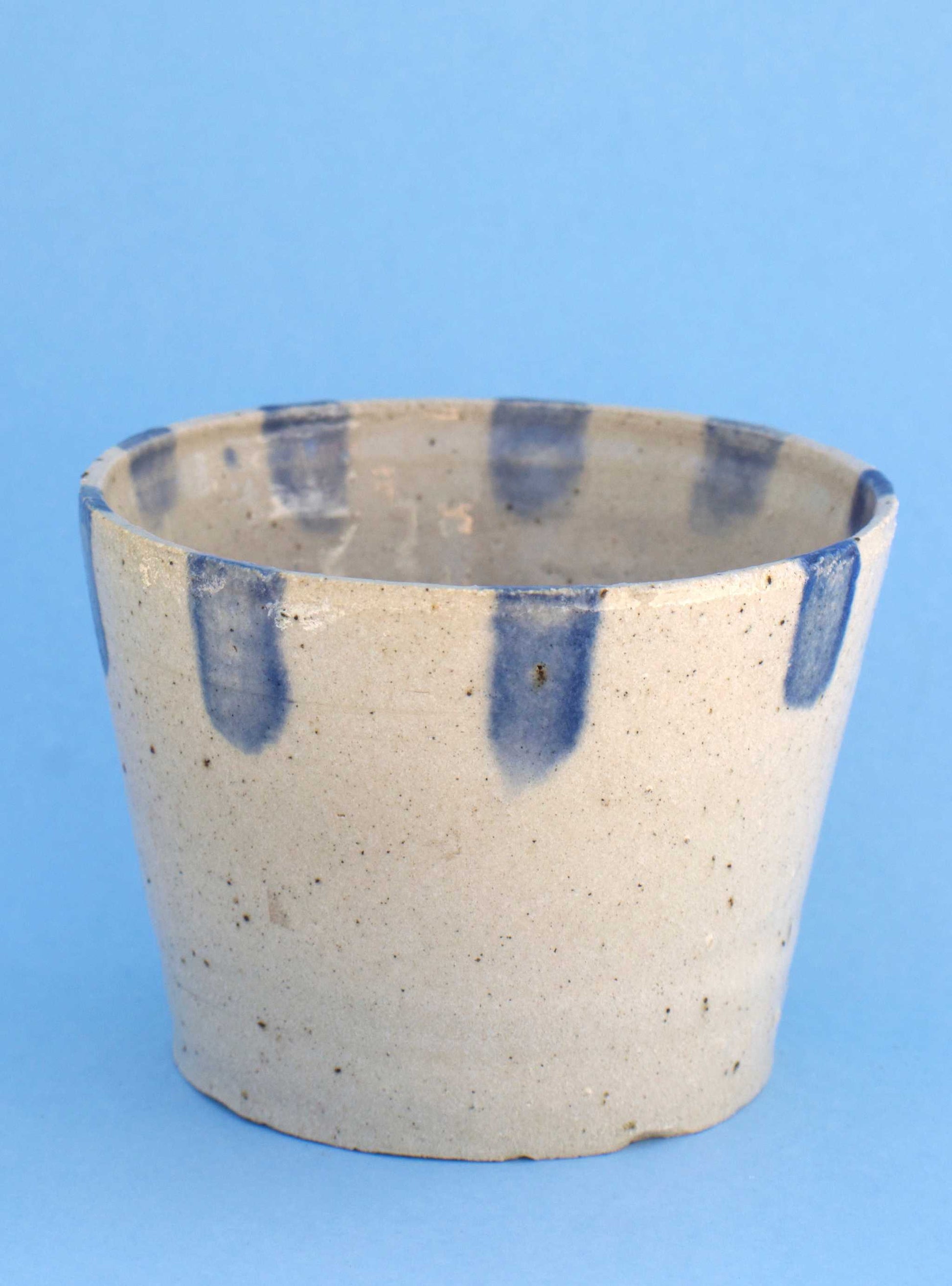 Der Topf ist handgefertigt aus Steinzeug und eignet sich für Innentöpfe mit einem Durchmesser von 9 cm und einer Höhe von ca. 8 cm. Der Topf hat kein Bodenloch!