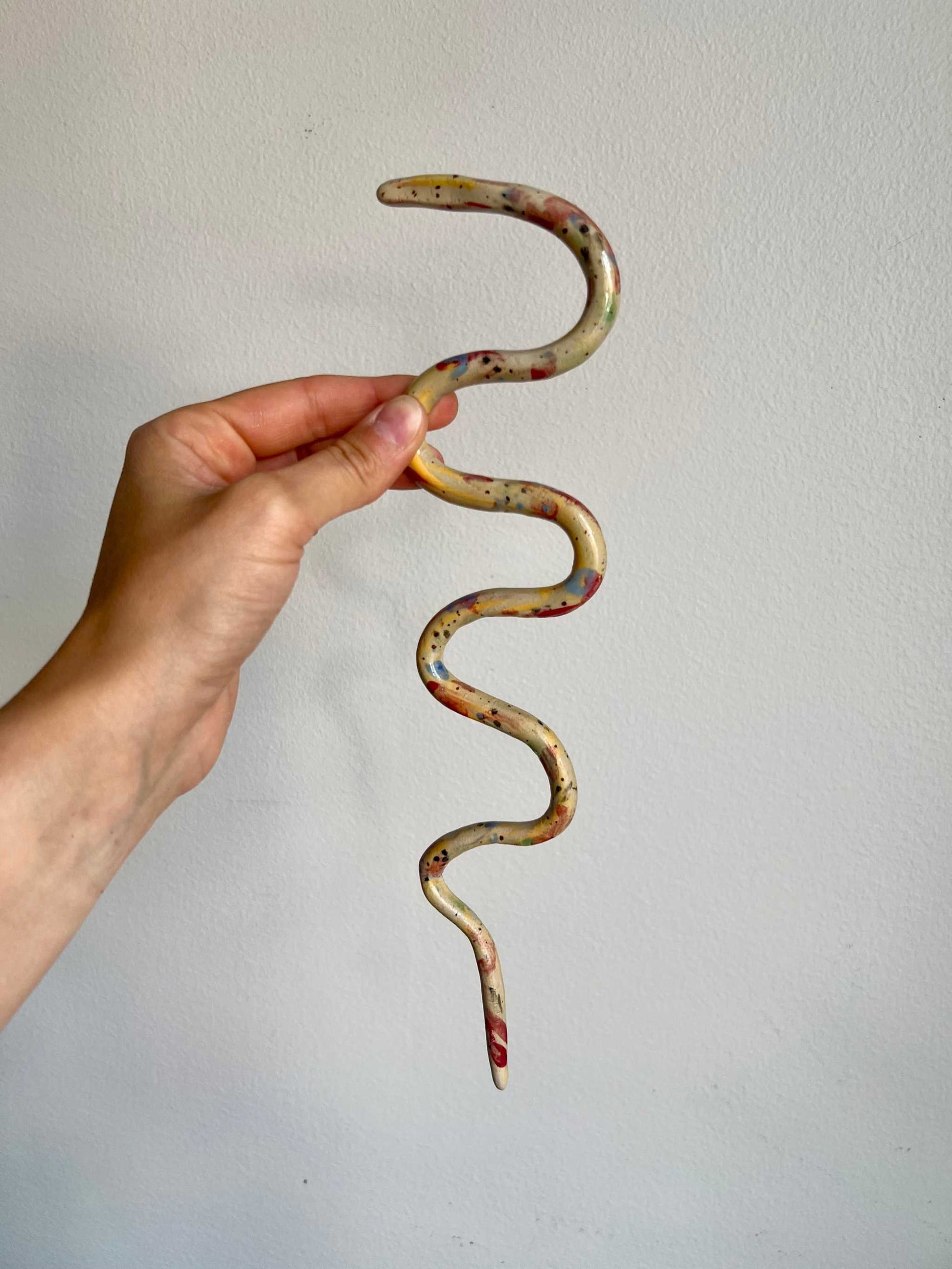 We finally have some snakes in the fern. Handmade ceramic supports for climbing plants and more! Decorate your jungle with completely safe and non-toxic friends.