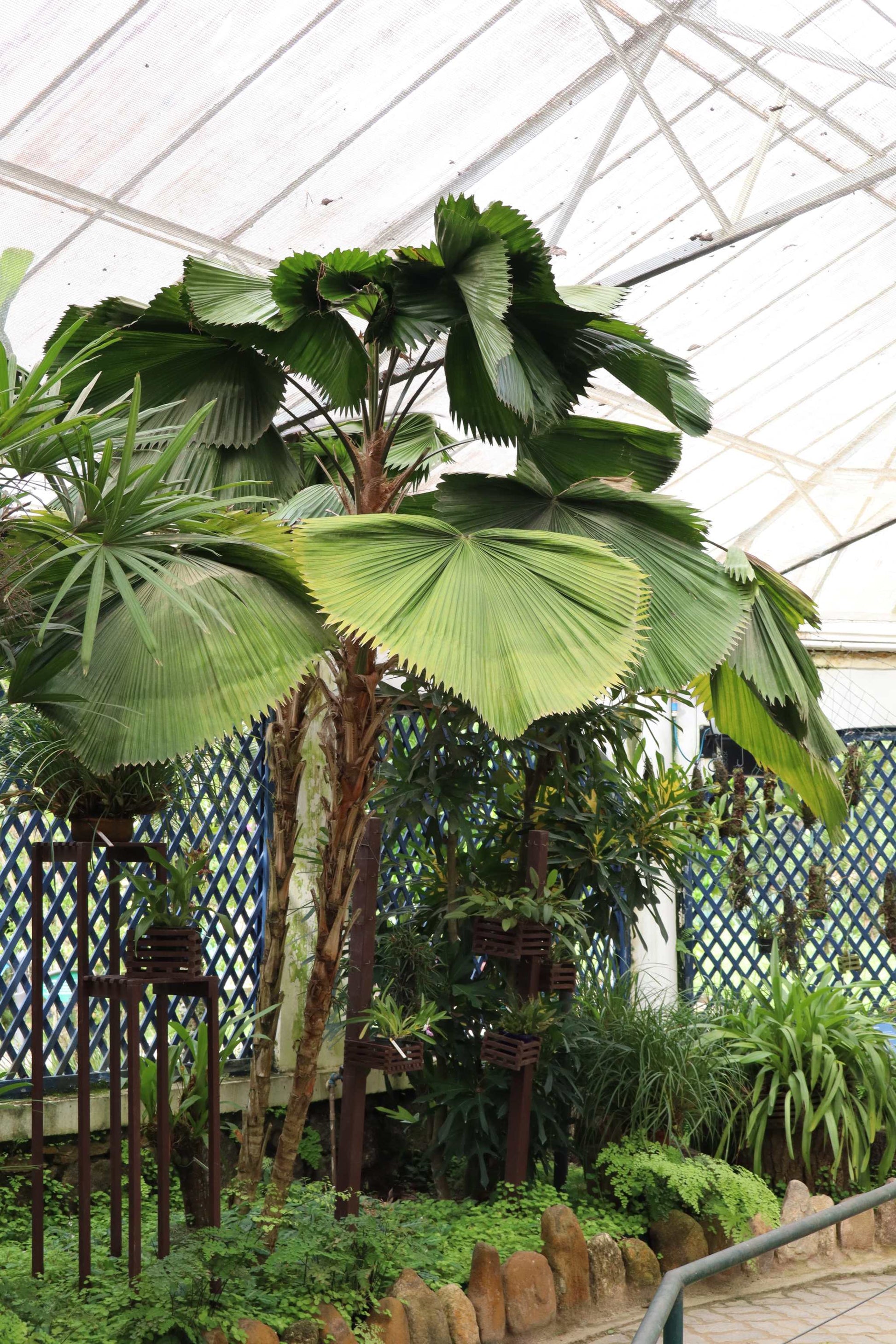 The unique folded structure and circular shape of the leaves make this species easily recognizable among other palm species. It belongs to the undergrowth and is adapted to grow in the shade under larger trees or indoors.