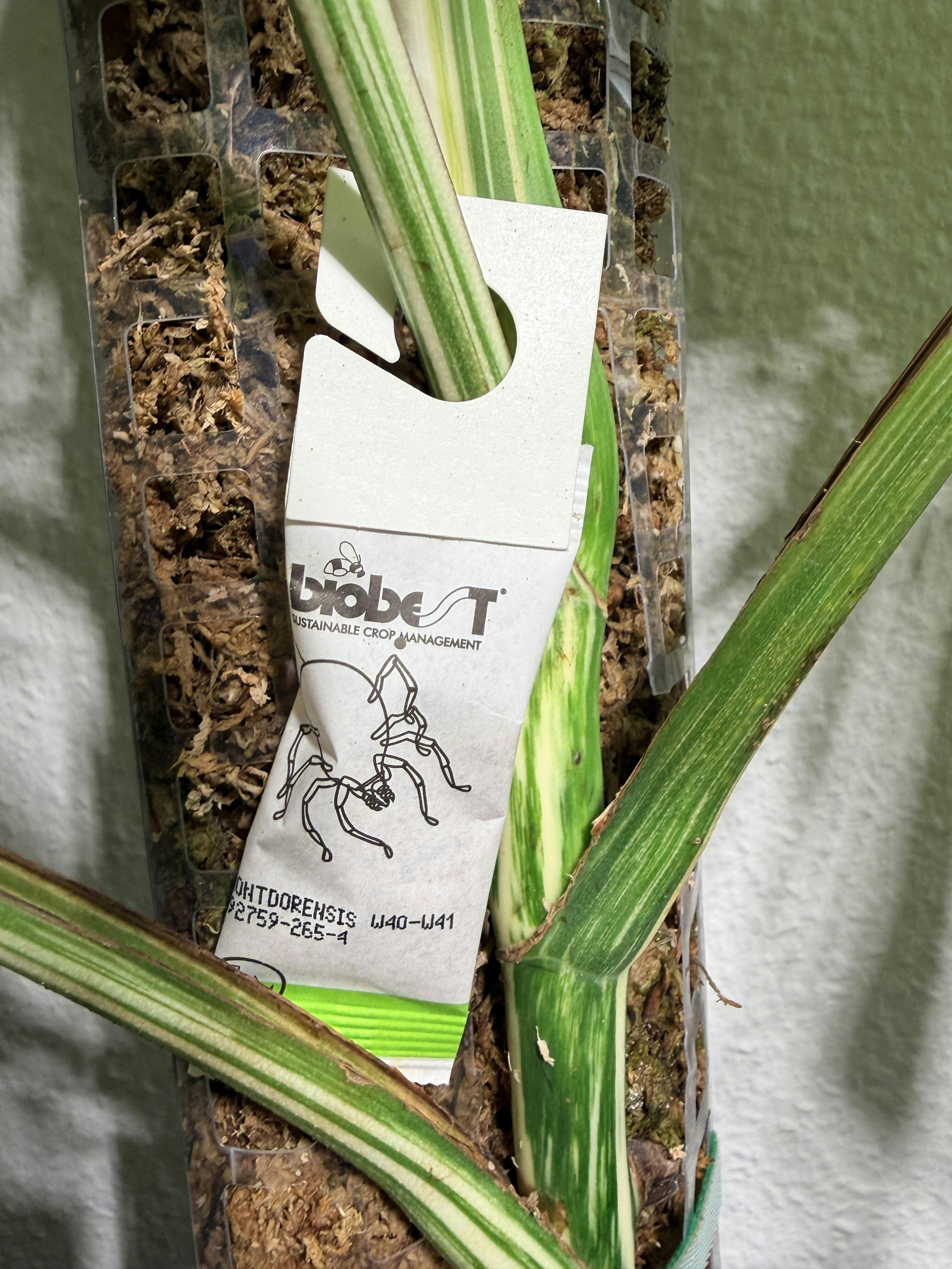 An effective way to combat thrips is to use beneficial insects, and one of the most reliable on the market is Montdorensis. You will receive packages that continuously release predatory mites onto the plants for 4-6 weeks. These mites, Transeius montdorensis, are voracious hunters that actively seek out and eat, among other things: