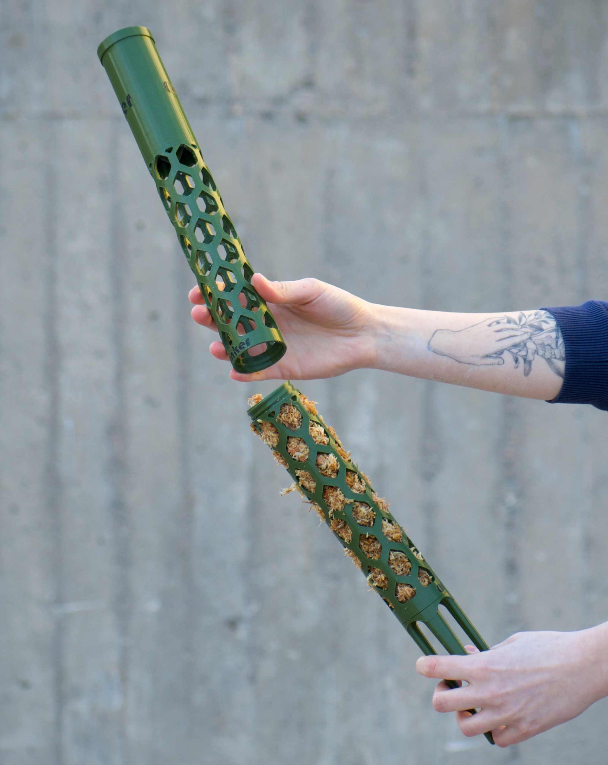 At the top is an irrigation module that slowly drips water into the moss. How often the container needs to be refilled depends on many factors, but is usually 2-3 times per week.