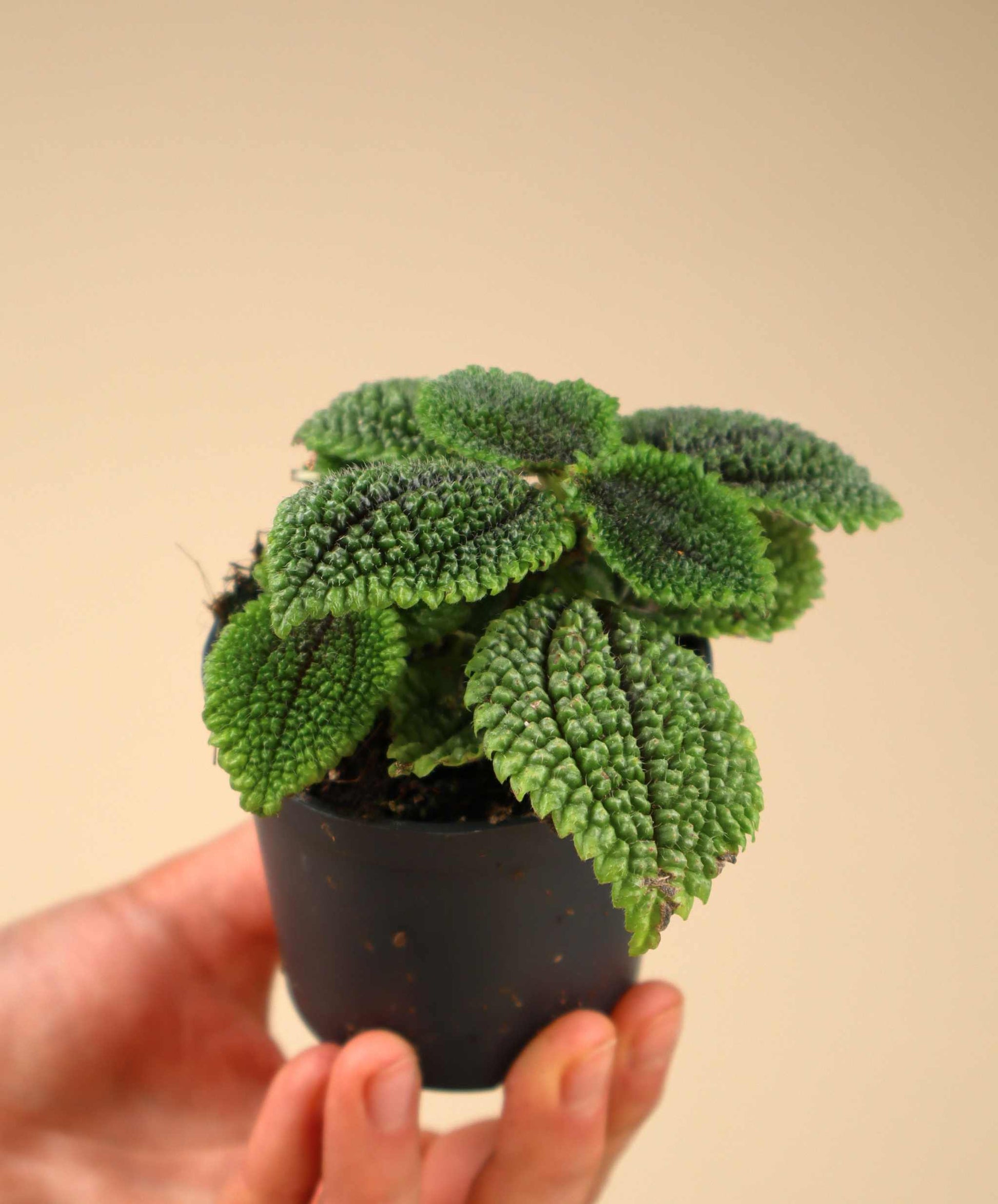 What makes Pilea mollis 'Moon Valley' special is its textured leaves that resemble the surface of the moon, hence its name. The leaves have deep folds and creases, giving them a wrinkled appearance.