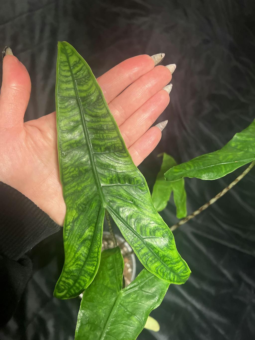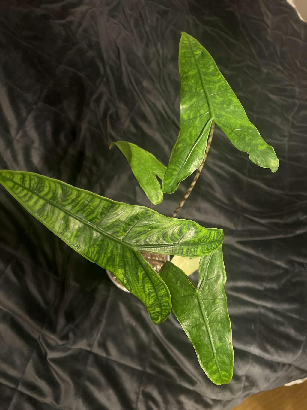 Alocasia reticulata är en mycket ovanlig variant av den populära arten, Alocasia zebrina.