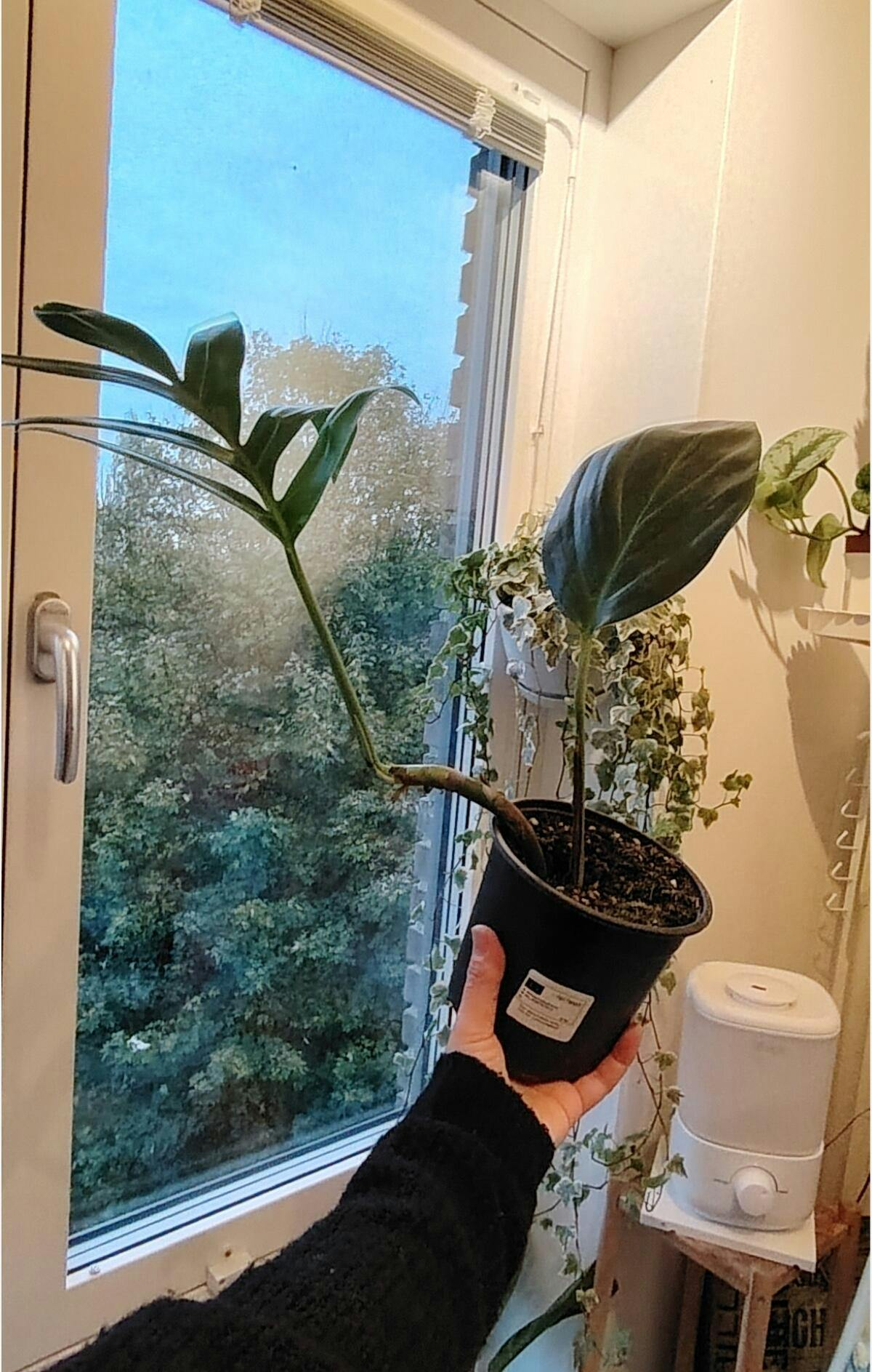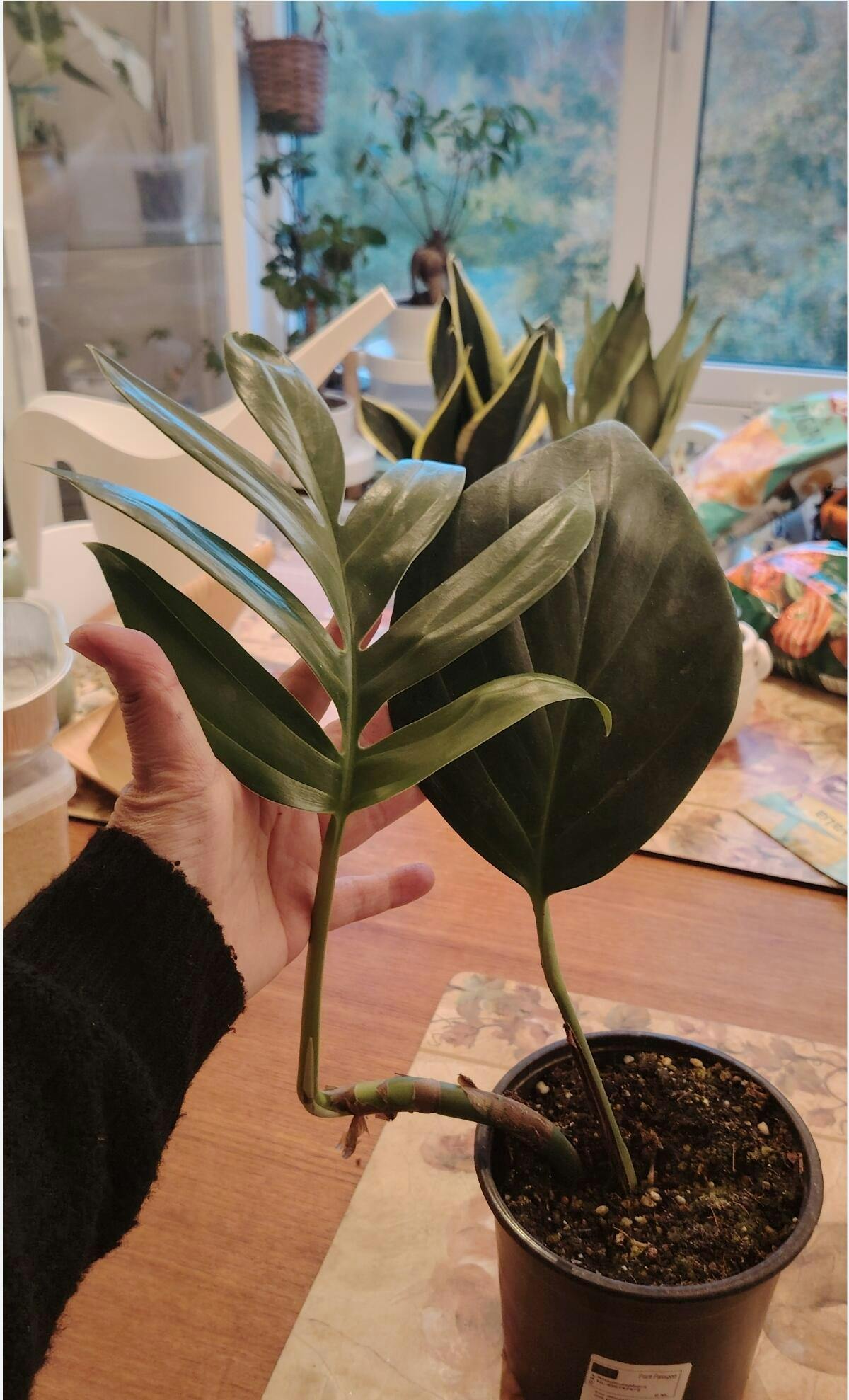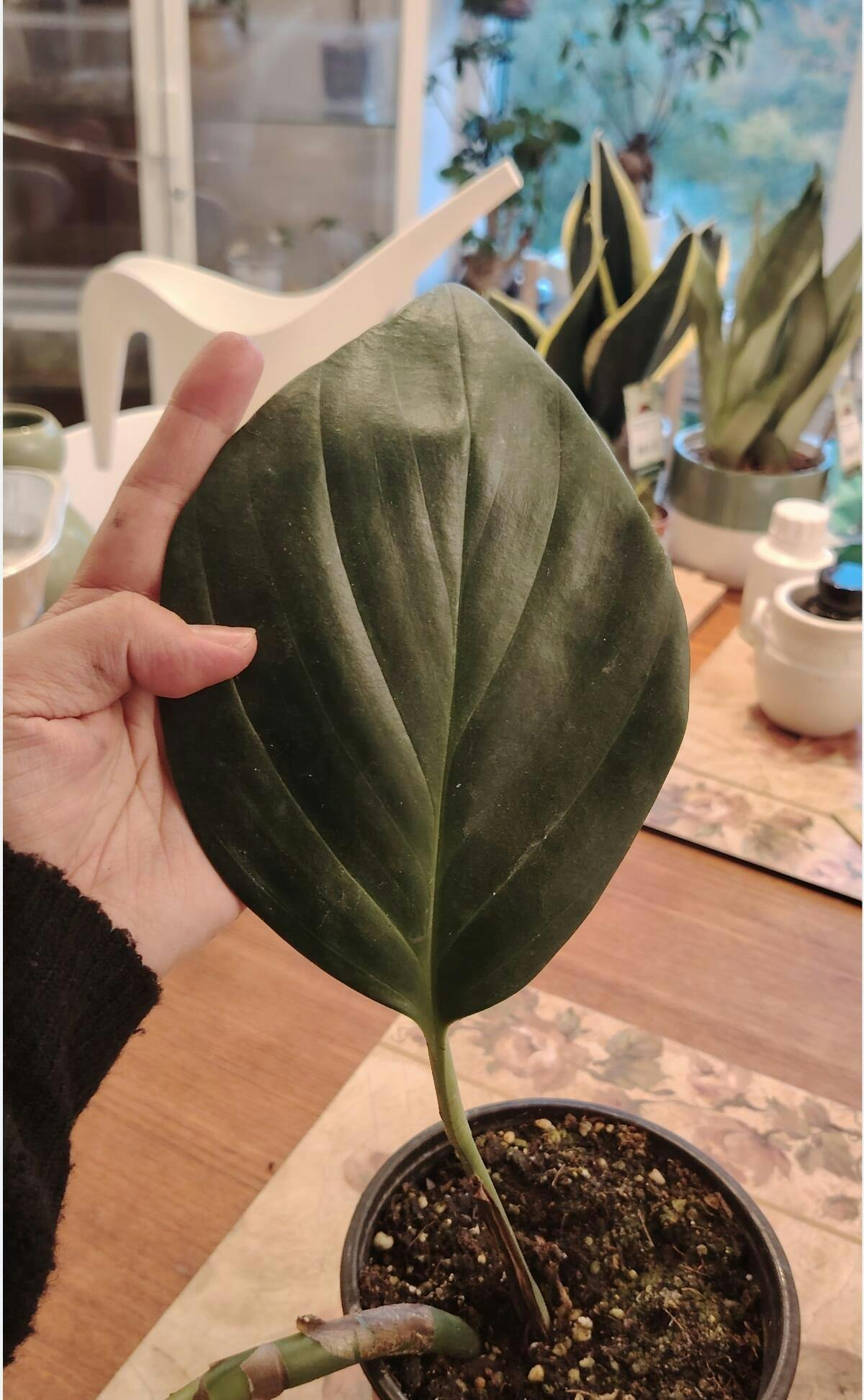 Fick en Philodendron melanochrysum dock hade den bara ett blad men annars var jag jätteglad över vad jag fick <3