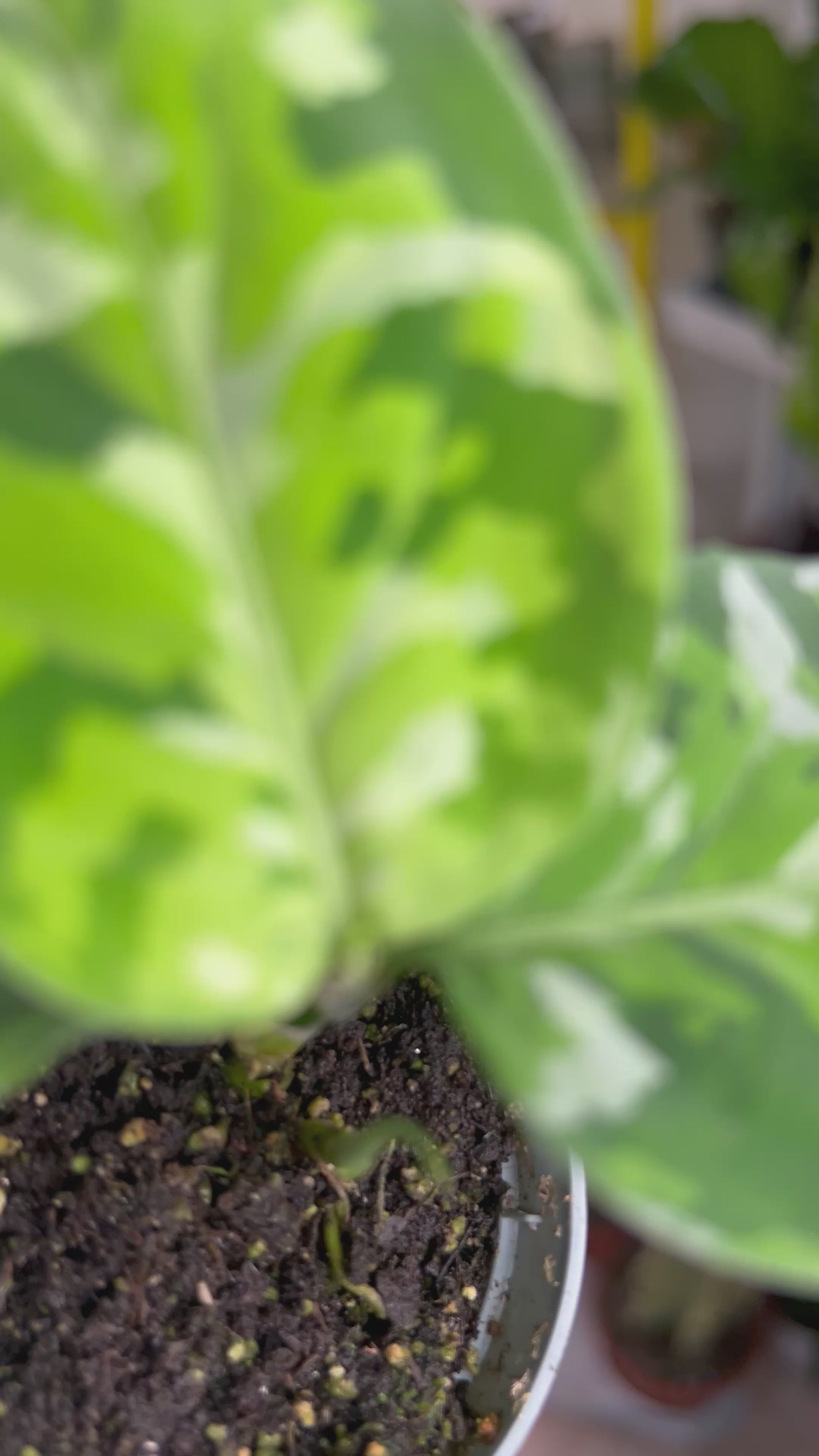 Bladen är långa och smala och kan bli upp till 30 cm långa. Deras unika kamouflagemönster ger växten dess smeknamn, med gröna, mörkgröna och grå toner som skapar ett häftigt mönster.