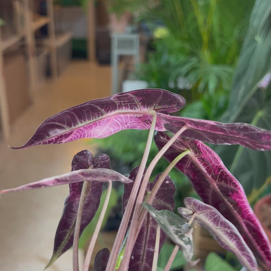 Denna lilla Alocasia når endast 30 cm i höjd, vilket gör den perfekt för alla hem där utrymmet är begränsat men passionen för unika växter är stor.
