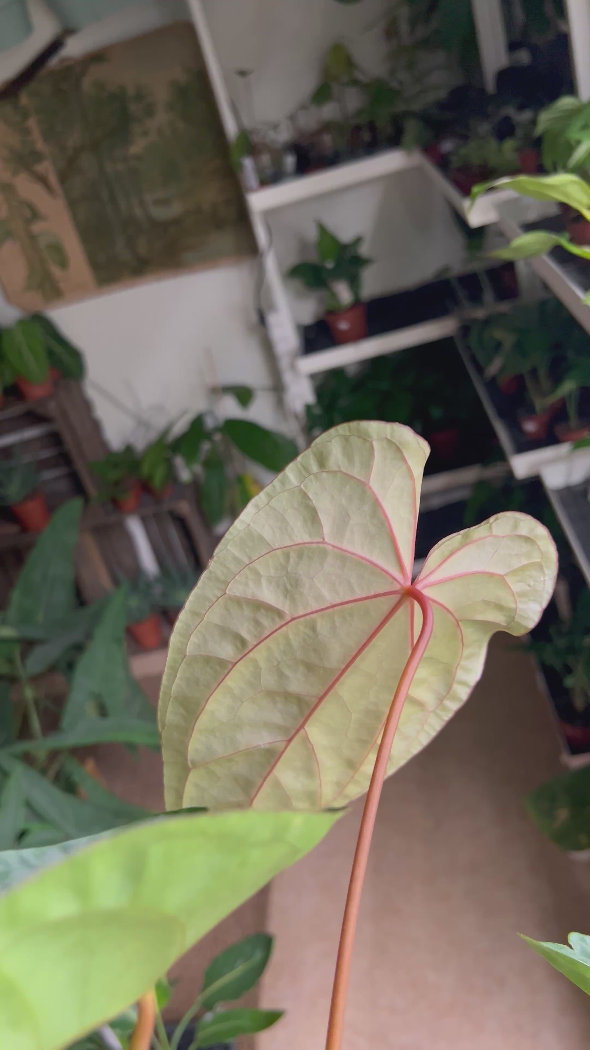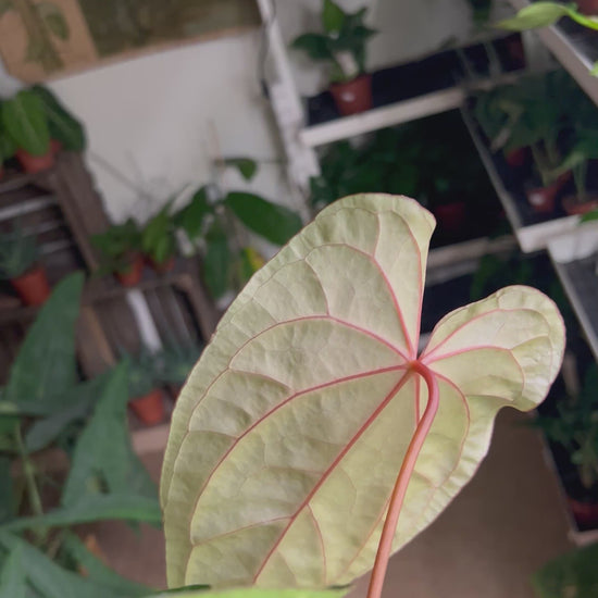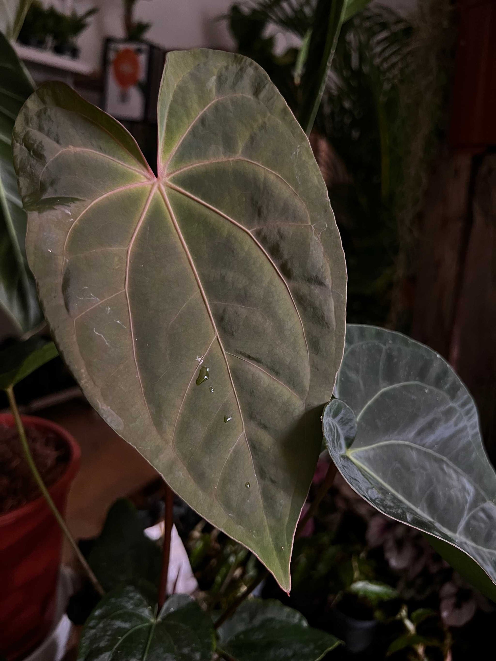 En enigmatisk Anthurium ursprungligen från Indonesien med oklar hybridhistoria. Dark Phoenix fångar ögat med sina djupt mörkgröna, sammetslena blad som känns nästan som tyg när du stryker över dem.