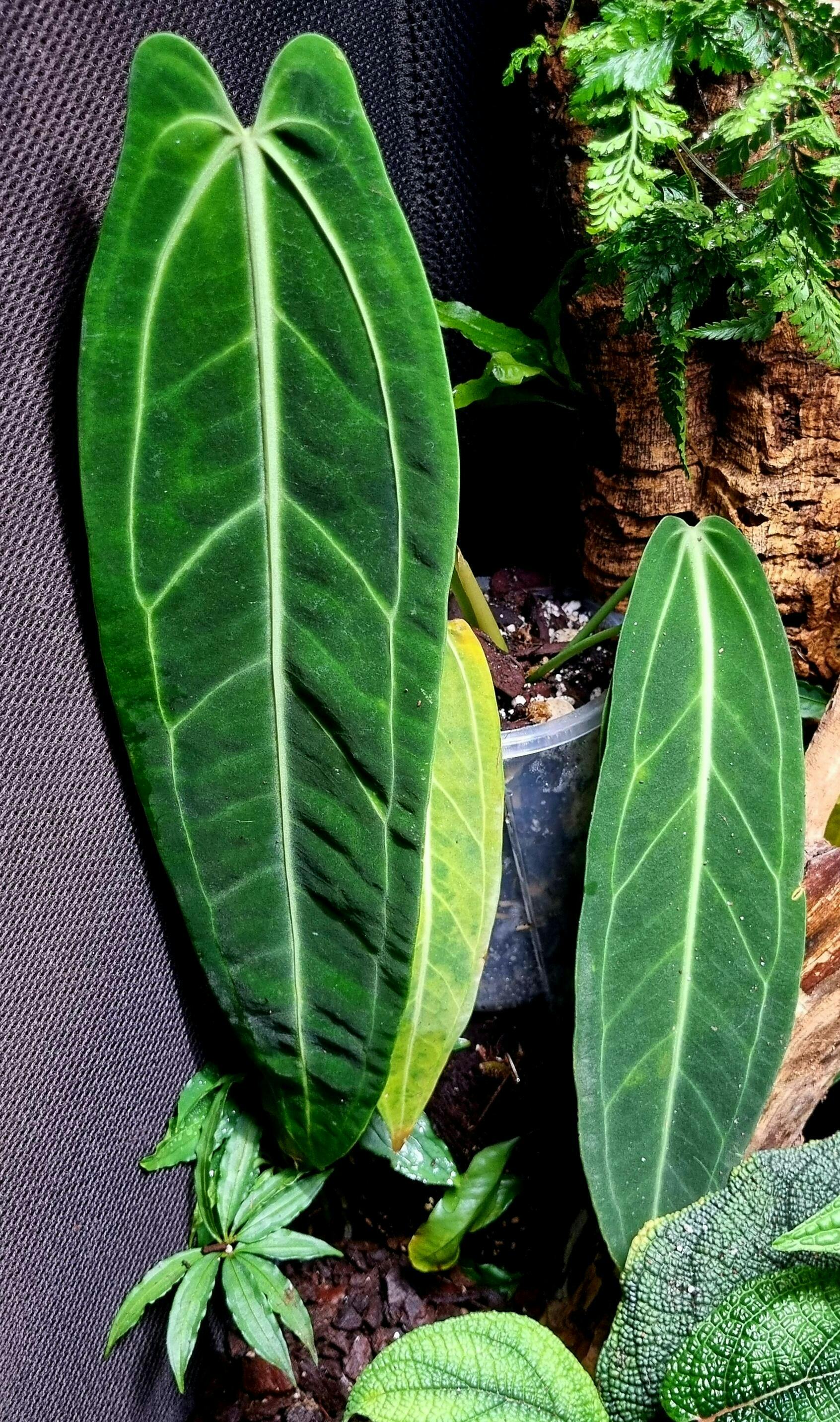 Anthurium warocqueanum är känd för sina långsträckta blad som kan nå längder på upp till 1,2 meter!