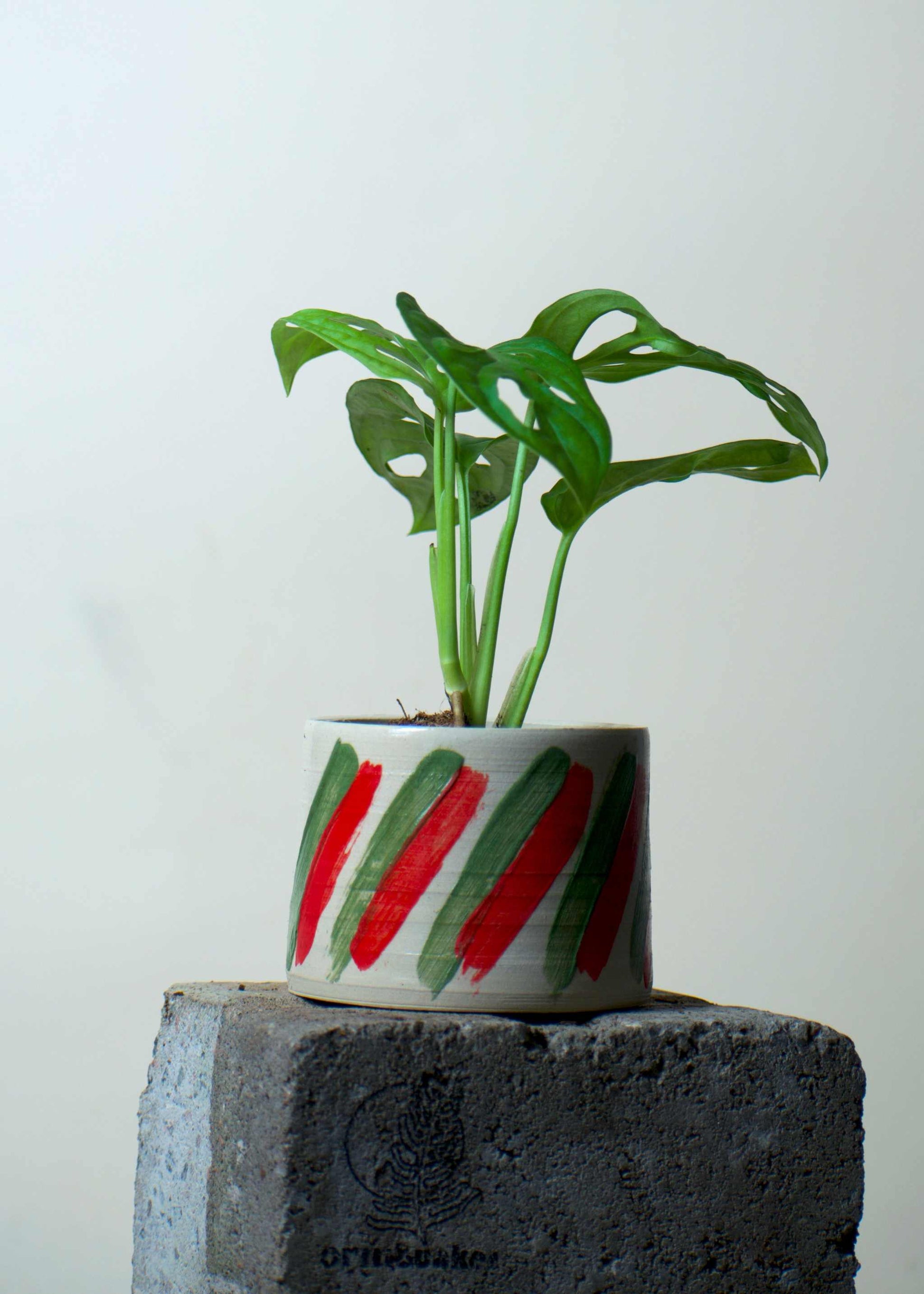 En liten, charmig kruka för en liten växt i en plastkruka med en maximal bredd på 7 cm och en höjd på 6 cm.