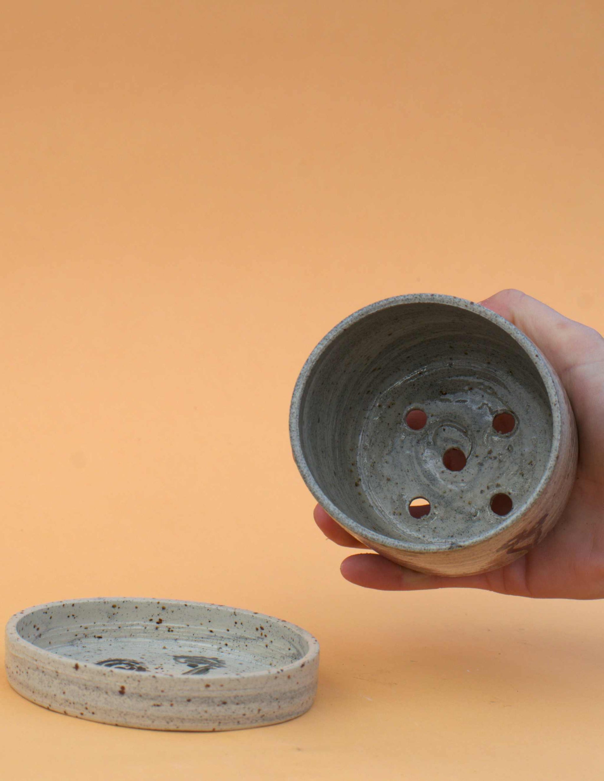 Keramikkruka med fat | Ormbunke | Stengodslera