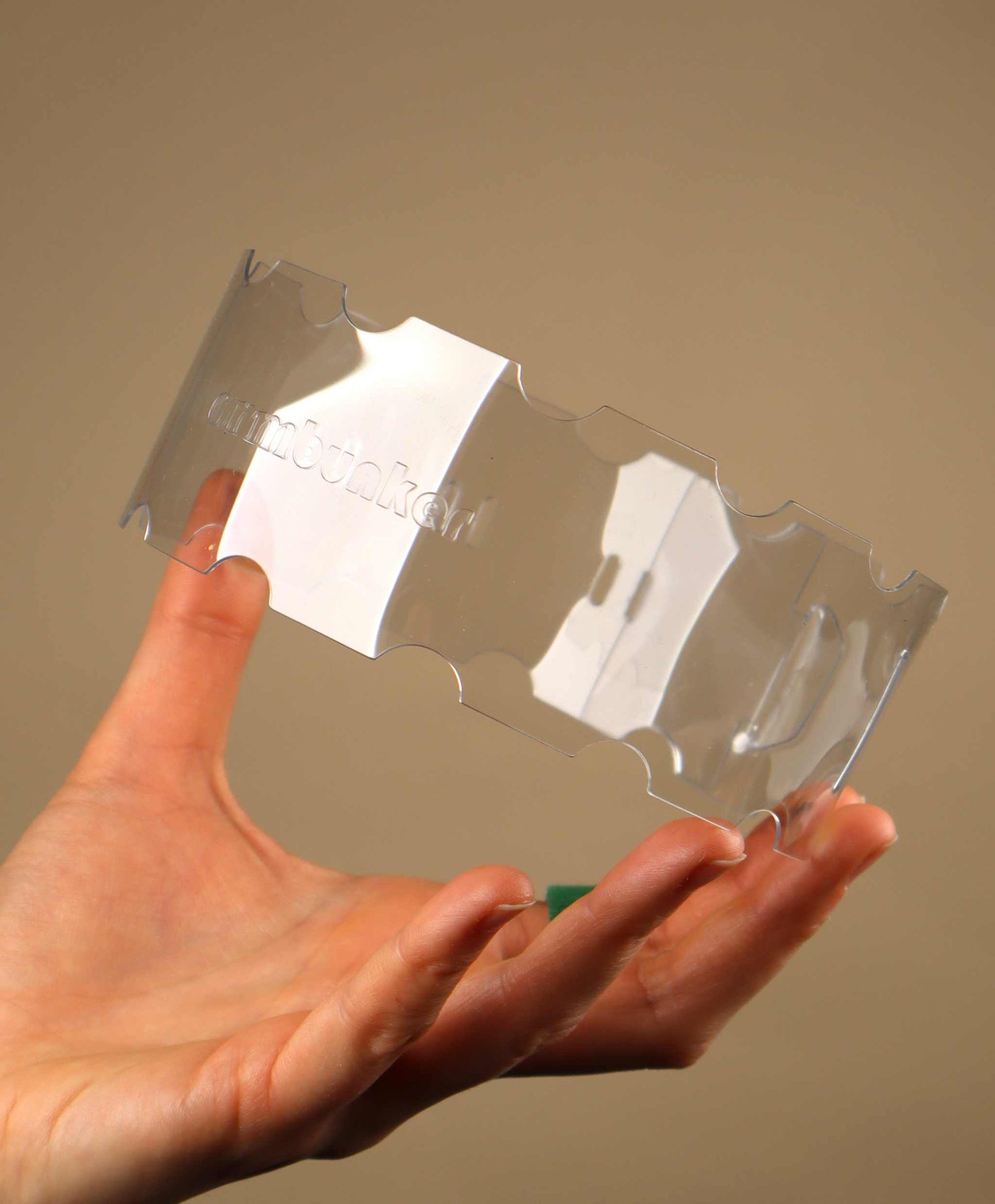 Produkten har en flexibel diameter och finns i två storlekar med en höjd på 5 centimeter. Tillverkad av kristallklar PET-plast som är både hållbar och återvinningsbar. Urtagen längs sidorna ger utrymme för bladskaft att växa och sprida sig.