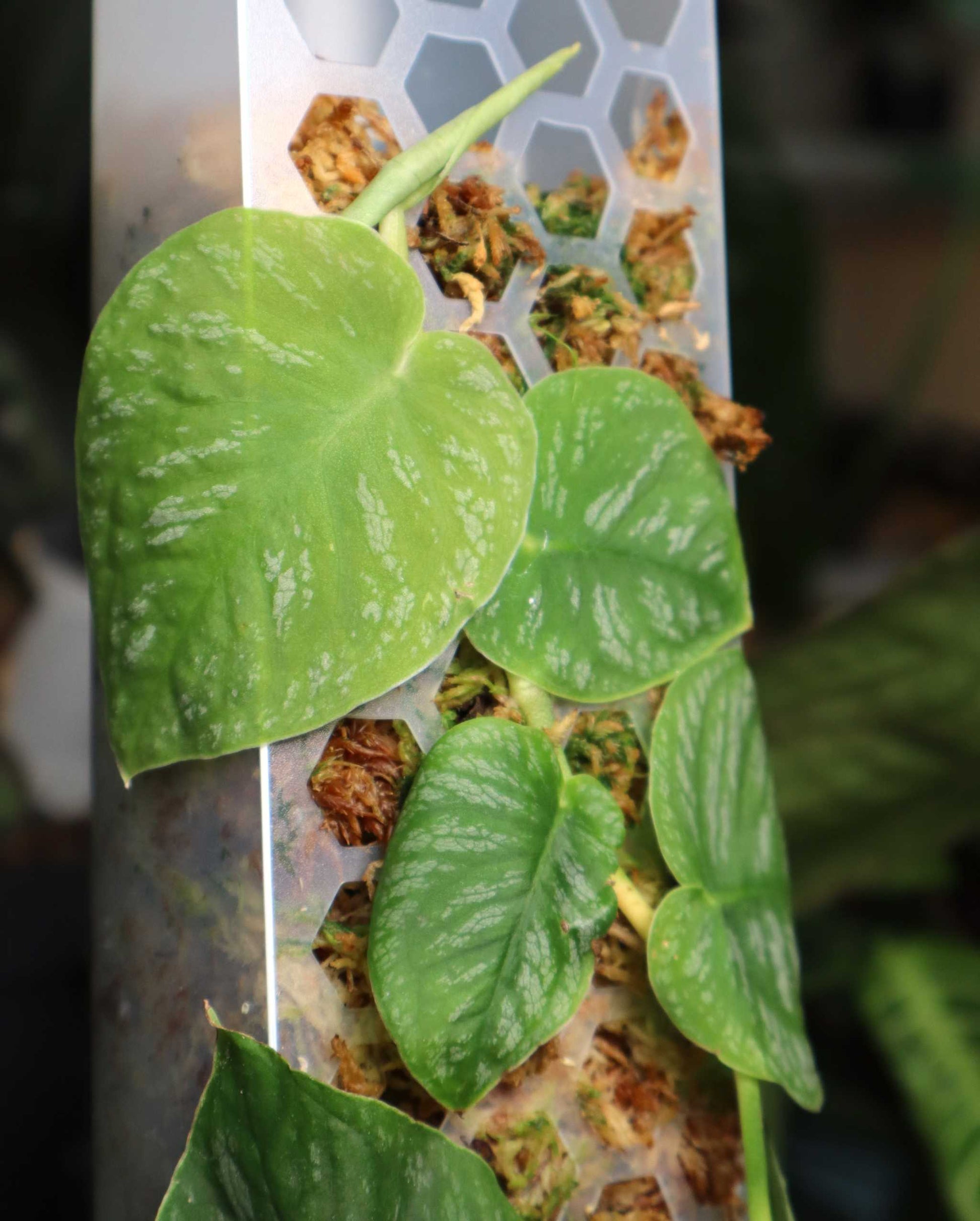 Vattna från toppen för att hålla mossan fuktig, vanligtvis ca en gång per vecka. Glöm inte att gödsla regelbundet. Långtidsgödsling kan strös på toppen av mosspålen efter den fyllts.