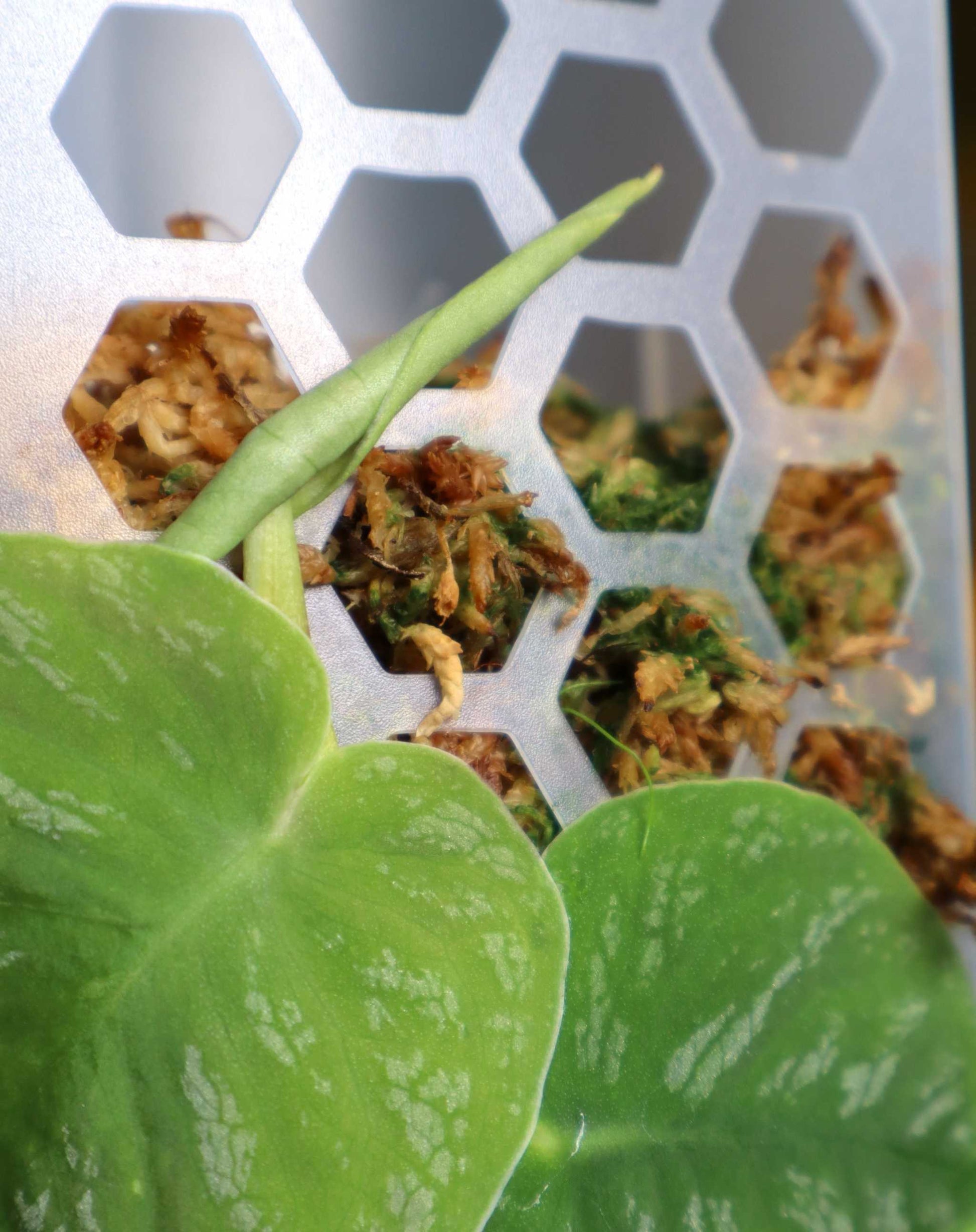 Framsidan har ett hexagonalt mönster som ger bättre grepp för luftrötterna. Ventilationen också finns endast på framsidan för att bevara fuktigheten längre!