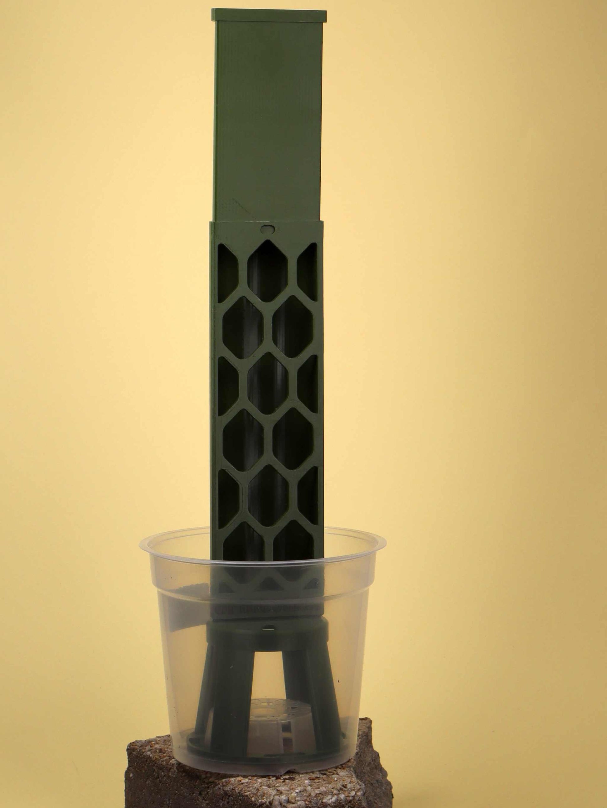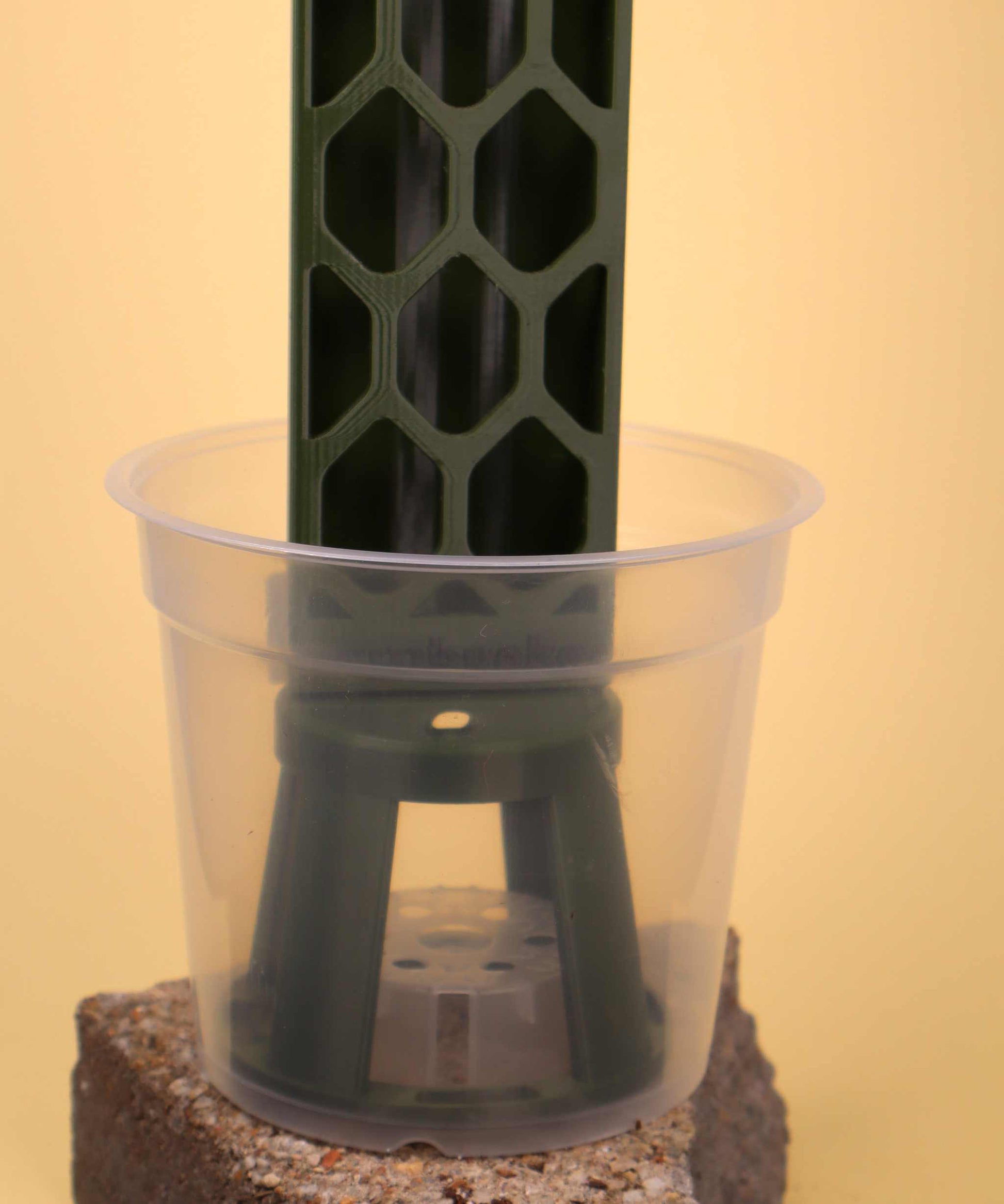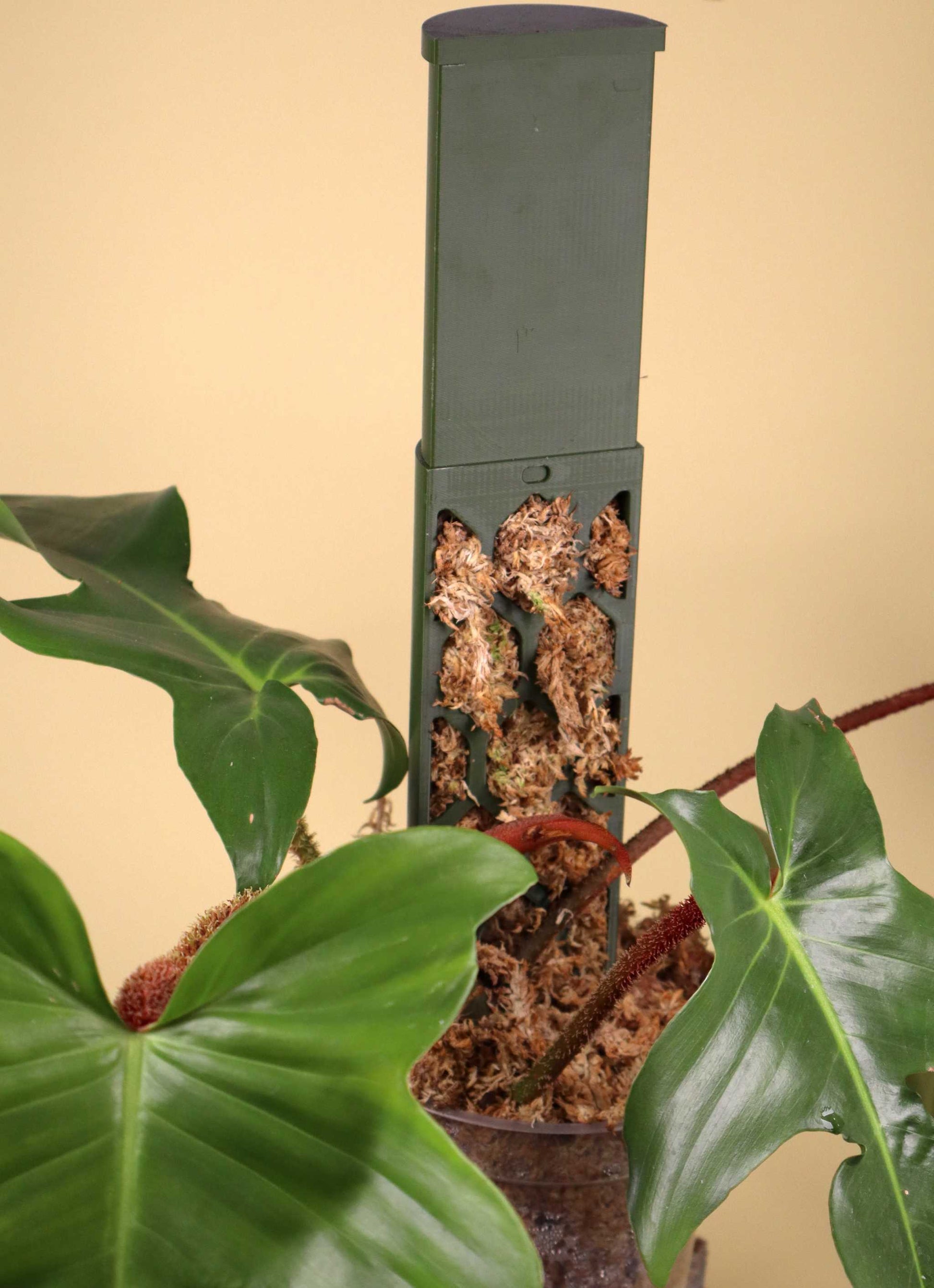 Mosspålen fylls enkelt med sphagnummossa eller ditt föredragna odlingsmedium. Med vattenbehållaren kan mossan enkelt hållas fuktig hela tiden. När det är dags att förlänga växtstödet kan en ny modul smidigt skruvas på.