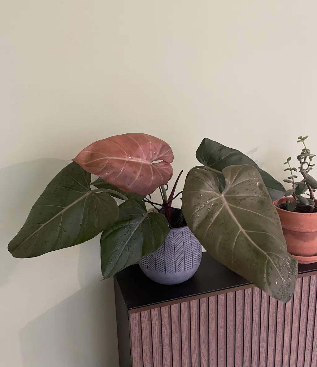 Så nöjd, frisk o pigg planta trots postombud frakt, välpackad. Jättefina gröna o rosa blad. Favoritplantan i hemmet just nu.