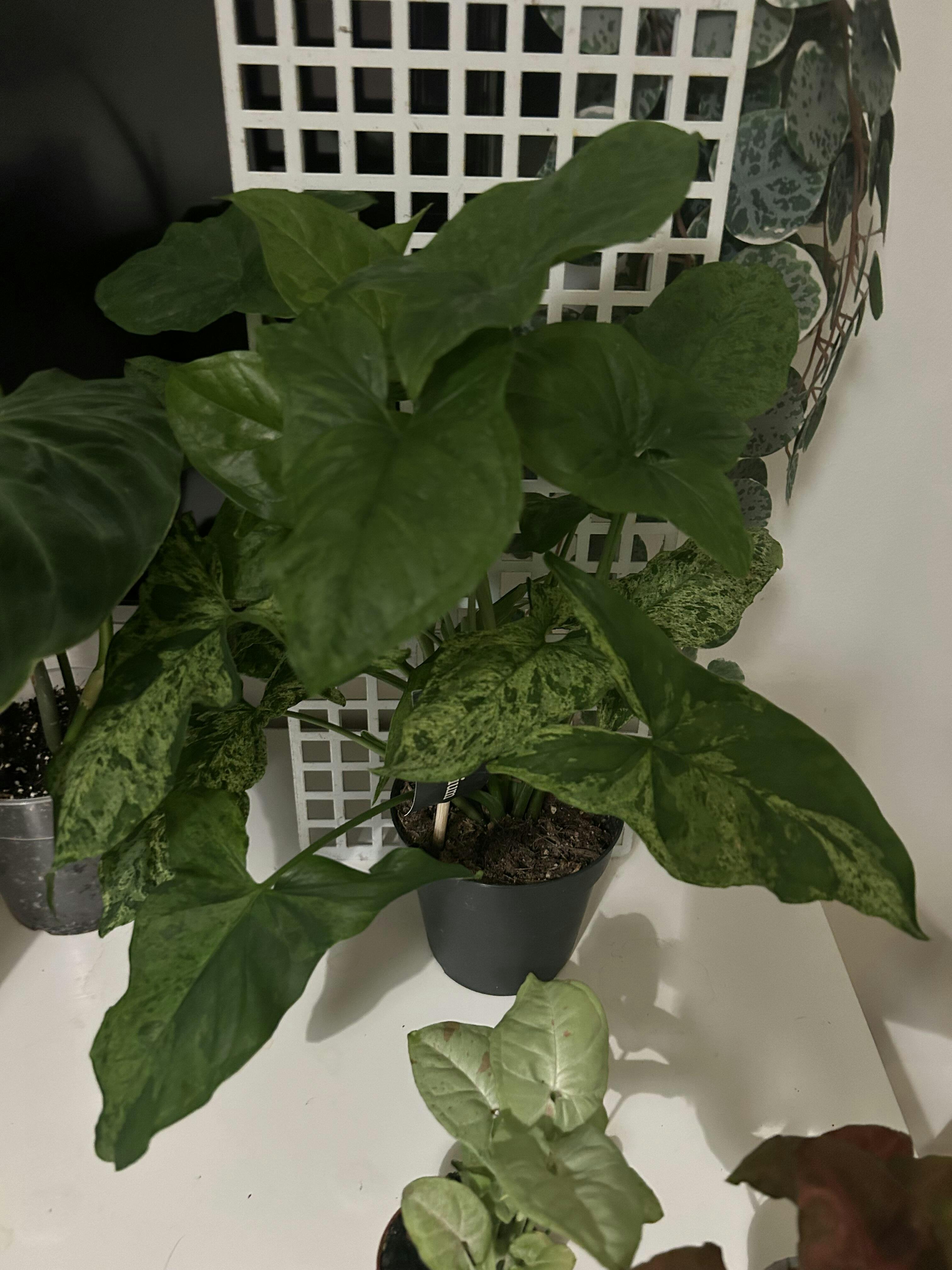 Syngonium Mottled är en klättrande eller hängande växt som kan anpassas till olika växtsätt beroende på hur den odlas. Med rätt stöd kan den klättra, men den fungerar också bra som en fyllig krukväxt.